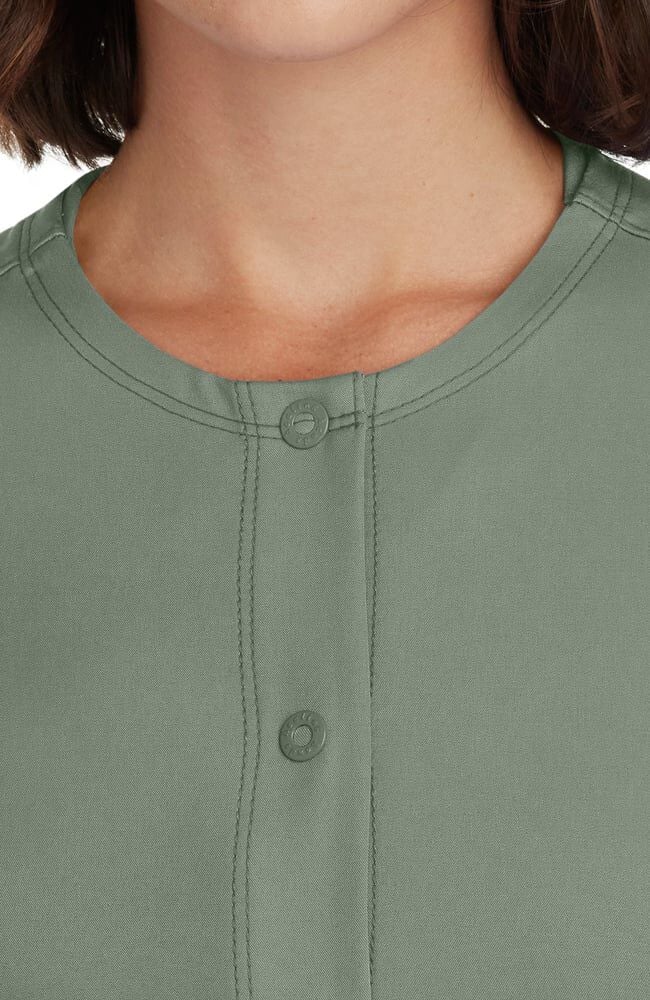 This is the classic HH Works scrub jacket from Healing Hands. The material is stretchy, light and always comfortable. The Megan has sturdy snap closures for a secure fit. Made with the same material as all of our HH Works collection. Stay warm and stylish all day.